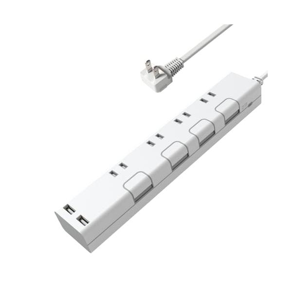 電源タップ USB 延長コード 個別スイッチ付き 1m ホワイト