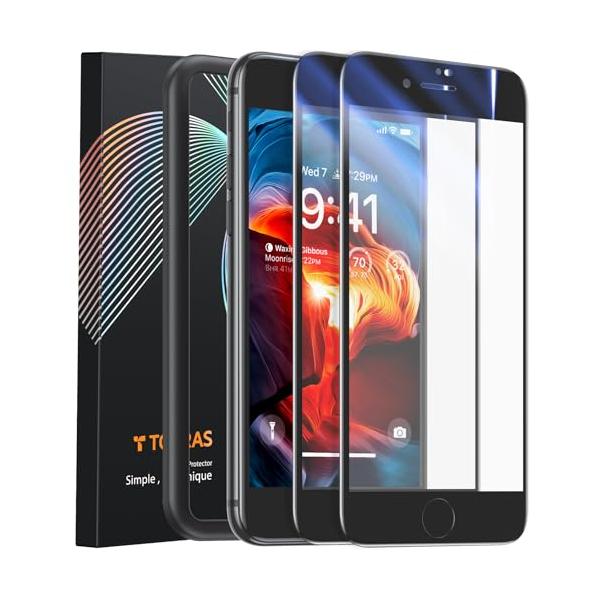 米軍規格TORRAS iPhone SE3・SE2 用ガラスフィルム iPhone 8・7 用ガラスフィルム 縁が浮かない 9H越