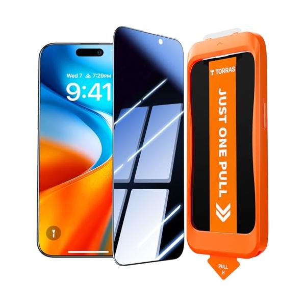 - 【覗き見完全シャットアウト!100%プライバシー保護】TORRASの偏光フィルター技術とマイクロルーバー設計により、他の選択肢の保護フィルムでは体験できない圧倒的な覗き見防止効果を実感できます。満員電車、カフェ、レジでの操作、SNSや写真閲覧でも、あなたのiPhone17Pro画面は完全なプライベート空間に。25°の超狭角で周囲の視線をしっかり遮断しつつ、真正面の鮮やかさはそのまま保持。誰にも覗かれず、安心してプライベートな操作が楽しめます。(TORRASのiPhone17Pro保護フィルムは専用設計で1:1完璧フィットで、全機能安心使用可能です。)TIPS:貼り付け後、顔認証を再設定するのは必要! 【2025新型iPhone17Pro専用|ゼロ失敗の貼り付け】専用設計iPhone17Proガラスフィルム(6.3インチ・1枚|航空宇宙級硬度x覗き見防止x高透明視界)|第5世代に進化した独自の「自動位置合わせ+自動吸塵」技術を搭載。ガイド枠を置くだけで正確に位置決め、引くだけで微細なホコリも吸着し、気泡ゼロで完璧に密着。