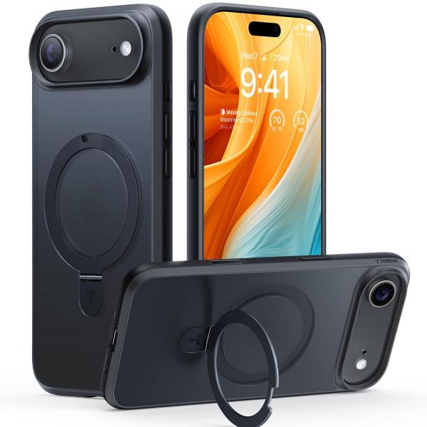 TORRAS iPhone 17 Air 用 ケース【業界初の耐衝撃スタンド・立てれば安定】リング Magsafe対応 米軍規格MIL カメラコントロールボタン マグネット搭載 耐久性 頑丈 ワイヤレス充電対応 耐衝撃 滑り止め 半透明「Ostand Q1 Guardian」(ブラック)