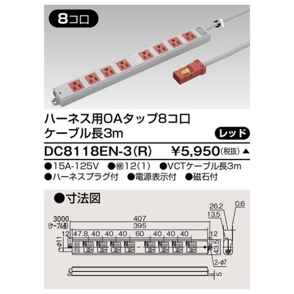 Я東芝 電設資材【DC8118EN-3(R)】オフィス用配線システム ハーネス用OAタップ8コ口 ケーブル長3m レッド 受注生産