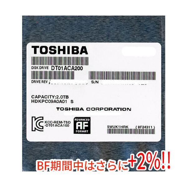 【ブラックフライデー!ポイント3倍!11/25-11/30!】TOSHIBA製HDD DT01ACA200 2TB SATA600 7200 [管理:20343857]