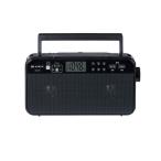 - ※メーカー在庫限りのため完売の場合はご了承ください New 2025年10月発売 AX-SHR70(K) ブラック 4560158876965 声くっきり機能 搭載 高音質のステレオスピーカー LEDライト付きホームラジオ LEDライト付きホームラジオ AX-SHR70(K) ブラック 4560158876965 ワイドFM AMFM FM/AM イヤホン端子 外部入力 スリープ LEDライト 機能特長 「声くっきり機能」でよりラジオの音声をくっきりに ホームラジオに「声くっきり機能※」を搭載。ニュース番組などしっかり人の声を聴きたい場合などにスライドして切り替えることで、くっきり聴こえます。また、正面に配置されていることでモードの状態が一目でわかります。 長時間LEDライト搭載 側面に便利なLEDライトを搭載。「強・弱」の2段階切替が正面ボタンでかんたんに操作ができます。強モードでは約200時間、弱モードでは約800時間の点灯が可能です。懐中電灯の代わりにアウトドアや暗がりでの作業はもちろん、非常時も安心して長時間ご使用いただけます。 乾電池使用でも安心長持ち FM放送受信で最大約140時間、AM放送受信で約160時間の連続使用が可能。毎日のラジオライフを快適に楽しめます。非常時でも安心してご使用いただけます。 ※東芝アルカリ乾電池(単2形乾電池×3本(別売))を使用して内蔵スピーカーで受信した場合 大音量&高音質ステレオスピーカー搭載 φ8cm&2Wの大音量高音質のスピーカーを左右に搭載。スポーツ中継や音楽番組がクリアな音質で楽しめ、屋外でもはっきり聴こえます。 おやすみタイマー付き 「おやすみタイマー」により、90分が経過すると自動的に電源が切れます。ラジオ番組を聴きながらおやすみになりたいときに便利です。 寸法/仕様 ラジオ部 受信周波数 FM:76.0~108.0MHz AM:522~1,620kHz 共通部 電源 DC5V、DC4.5V(単2形乾電池×3本) 電池持続時間※1 東芝アルカリ乾電池(単2形乾電池×3本)(別売) 内蔵スピーカー使用時* FM受信:約140時間 AM受信:約160時間 LEDライト点灯時間:(強)点灯時間:約200時間/(弱)点灯時間:約800時間 外部入力動作時間:約350時間(3mW+3mW出力時) スピーカー φ8.0cm(4Ω)×2 実用最大出力* 2000mW×2※2 入出力端子 外部入力:φ3.5mmステレオミニジャック ヘッドホン出力:φ3.5mmステレオミニジャック 最大外形寸法 220(幅)×120(高さ)×55(奥行)mm(突起物含まず) 229(幅)×121.5(高さ)×72(奥行)mm(突起物含む) 質量 約805g(乾電池含) 約605g(乾電池含まず) 付属品 USB電源ケーブル、USB-ACアダプター、肩ベルト、取扱説明書(保証書付き) このページに掲載の商品は、東芝エルイートレーディング株式会社別ウィンドウで開きますが製造・販売しています。 *は(一社)電子情報技術産業協会の定める「JEITA規格」による測定値です。 ※1:実際の電池持続時間は、周囲の温度や使用状況により、短くなることがあります。 ※2:乾電池使用時は1800mW×2。 ★クロネコ延長保証はこちらから★