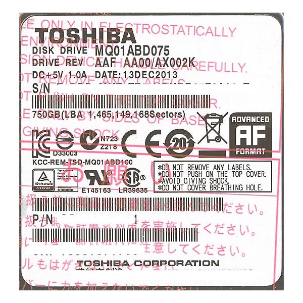 TOSHIBA(東芝) ノート用HDD 2.5inch MQ01ABD075 750GB [管理:20346014]