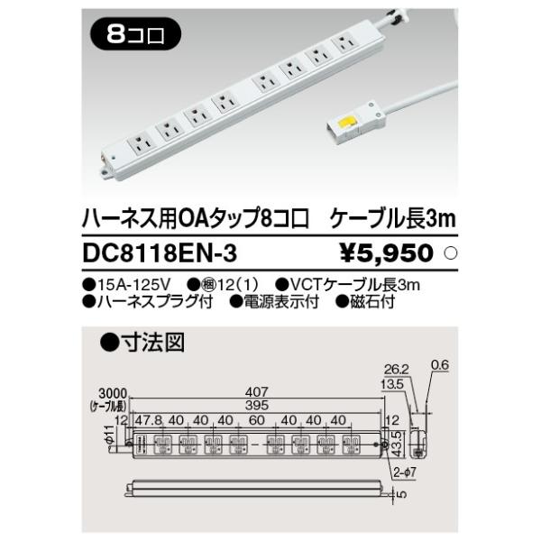 (手配品) OAタップ(8コ口3m) DC8118EN-3 東芝ライテック (DC8118EN3)