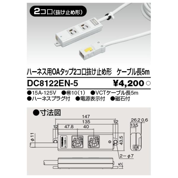 (手配品) ハーネスOAタップ抜止(2コ口5m) DC8122EN-5 東芝ライテック (DC8122EN5)