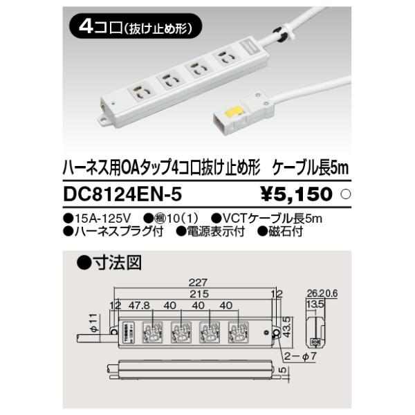 (手配品) ハーネスOAタップ抜止(4コ口5m) DC8124EN-5 東芝ライテック (DC8124EN5)