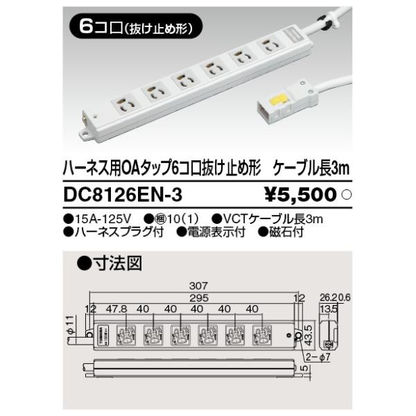 ハーネスOAタップ抜止(6コ口3m) DC8126EN-3 東芝ライテック (DC8126EN3)