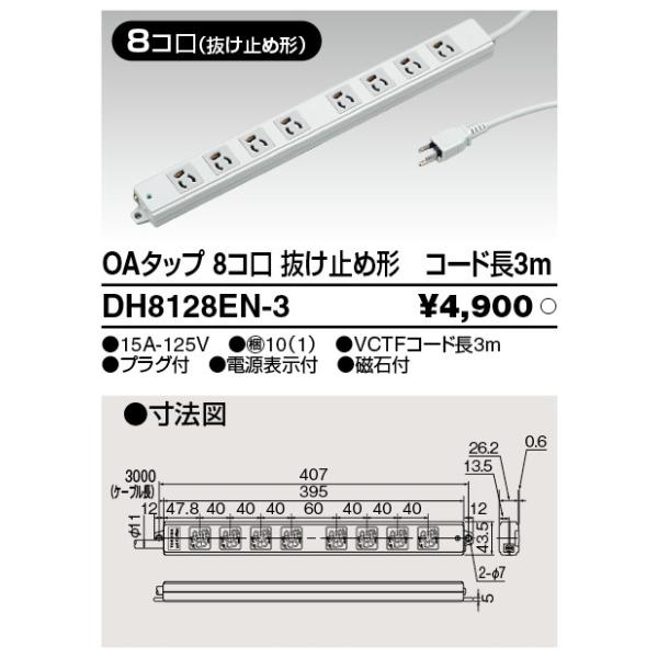 (手配品) OAタップ抜止8コ口3m DH8128EN-3 東芝ライテック (DH8128EN3)