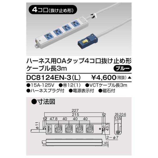 (受注生産品) ハーネスOAタップ抜止 4コ口3m青 DC8124EN-3(L) 東芝ライテック (DC8124EN3L)