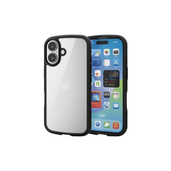 エレコム iPhone 16 ケース クリア 9H ハイブリッド ストラップホルダー ブラック PM-A24ATSLFCGBK