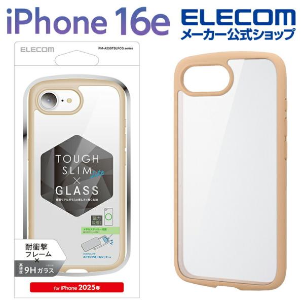 iPhone 16e 用 ケース フレームカラー 背面ガラス ハイブリッド ケース カバー 背面クリア カフェオレ PM-A25STSLFCGBE エレコム 在庫処分