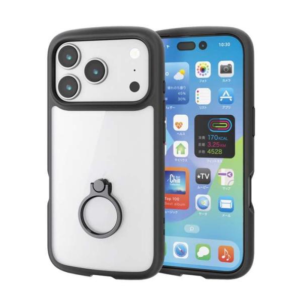代引不可 iPhone 17 Pro ケース ハイブリッド 衝撃吸収 軽量 薄型 リング付 TOUGH SLIM LITE ブラック