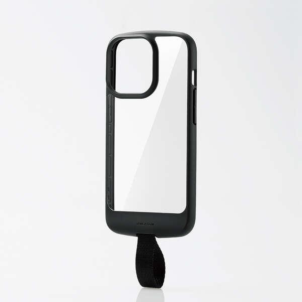 ELECOM iPhone 13 Pro(3眼用)TOUGH SLIM LITE フィンガーベルト ブラック 全周配置したエアクッションと背面特殊樹脂採用 ストラップホール PM-A21CTSLFCBBK