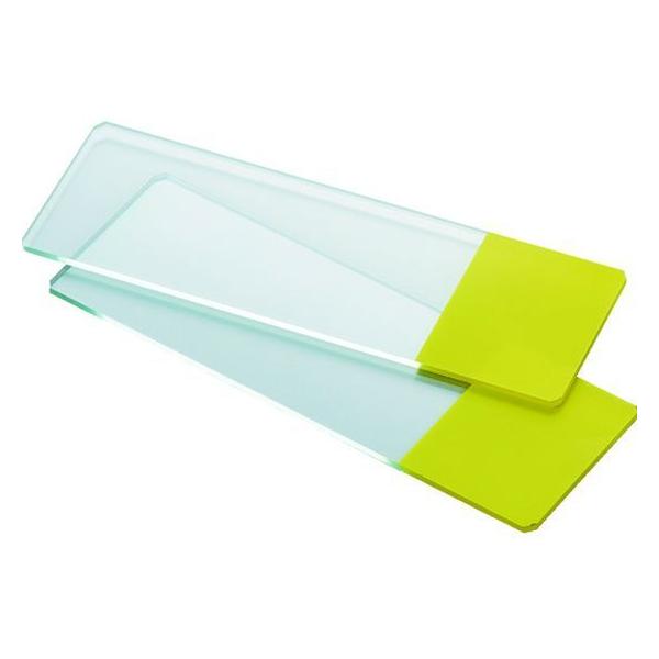 【商品説明】●洗浄済みホワイトガラスを使用しております。●四隅を45°に研磨しており安全です。●左端20mmにフロスト加工を施しており、油性ペンなどで書き込みができます。【仕様】●型番:SG-FY ●入数:50枚 ●フロスト部:イエロー ●幅×奥行×厚さ:75×25×1mm ●洗浄済みホワイトガラス製 ●縁研磨有り ●ホワイトガラス <ジェットプライス>
