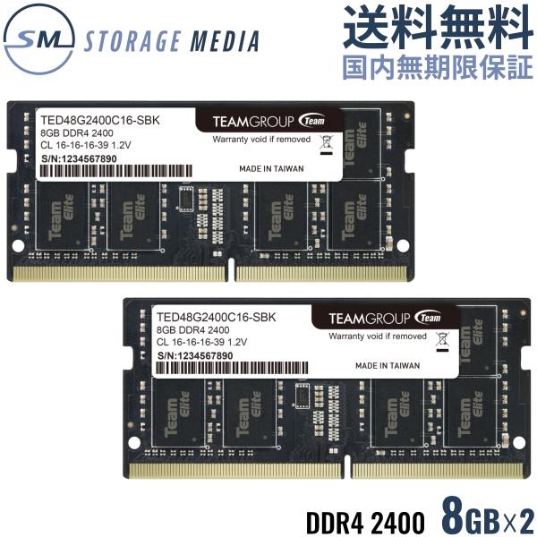 TEAM ELITE DDR4 2400 16GB (8GB×2) ノート用 メモリ 2枚組 SO-DIMM PC4-19200 CL16 TED416GM2400C16DC-S01-EC