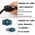 ★配線仕様:配線容量:A.W.G。 20-13(配線容量:0.5mm2-2.5mm2)。 シーリングガスケットID:11.5mm、外線通過範囲:9-12mm; シーリングガスケットID:8.5mm、外線通過範囲:5-9mm。