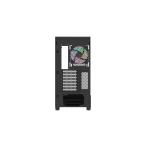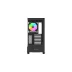 曲面強化ガラスパネルを採用したピラーレスデザイン。ARGBファンを備え背面コネクタ設計のマザーボードに対応したミドルタワー型PCケース