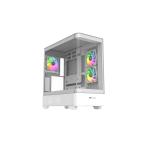 曲面強化ガラスパネルを採用したピラーレスデザイン。ARGBファンを備え背面コネクタ設計のマザーボードに対応したミドルタワー型PCケース