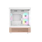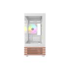 木目調デザインと強化ガラスパネルを融合したミニタワー型PCケースのホワイトモデルです。Micro-ATXおよびMini-ITXマザーボードに対応し、ARGBファンを3基標準搭載。優れたデザイン性と冷却性能を兼ね備えています。