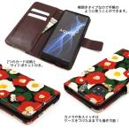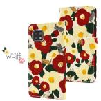 AQUOS sense4 / sense5Gを保護する、和柄チックな猫と椿の柄がかわいい、手帳型スマホケース。
