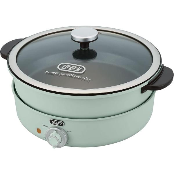 - いつもの食卓からホームパーティまで大活躍!■テーブル調理をいっそう楽しくしてくれます大人4人でも十分な3.5リットルのたっぷりサイズ■「鍋」、「内鍋」、「たこ焼きプレート」の3WAY最大1200Wの高火力!火力は無段階調整が可能■電源コード長さ:約1.8m■消費電力:1200W■付属品:鍋、内鍋、たこ焼きプレート、ガラス蓋、レシピブック、電源コード、ユーザーズガイド(保証書含む)■サイズ:幅340×奥283×高さ185mm■重量:約3300g ※本商品が対象となるクーポンは、その期間終了後、同一内容でのクーポンが継続発行される場合がございます。