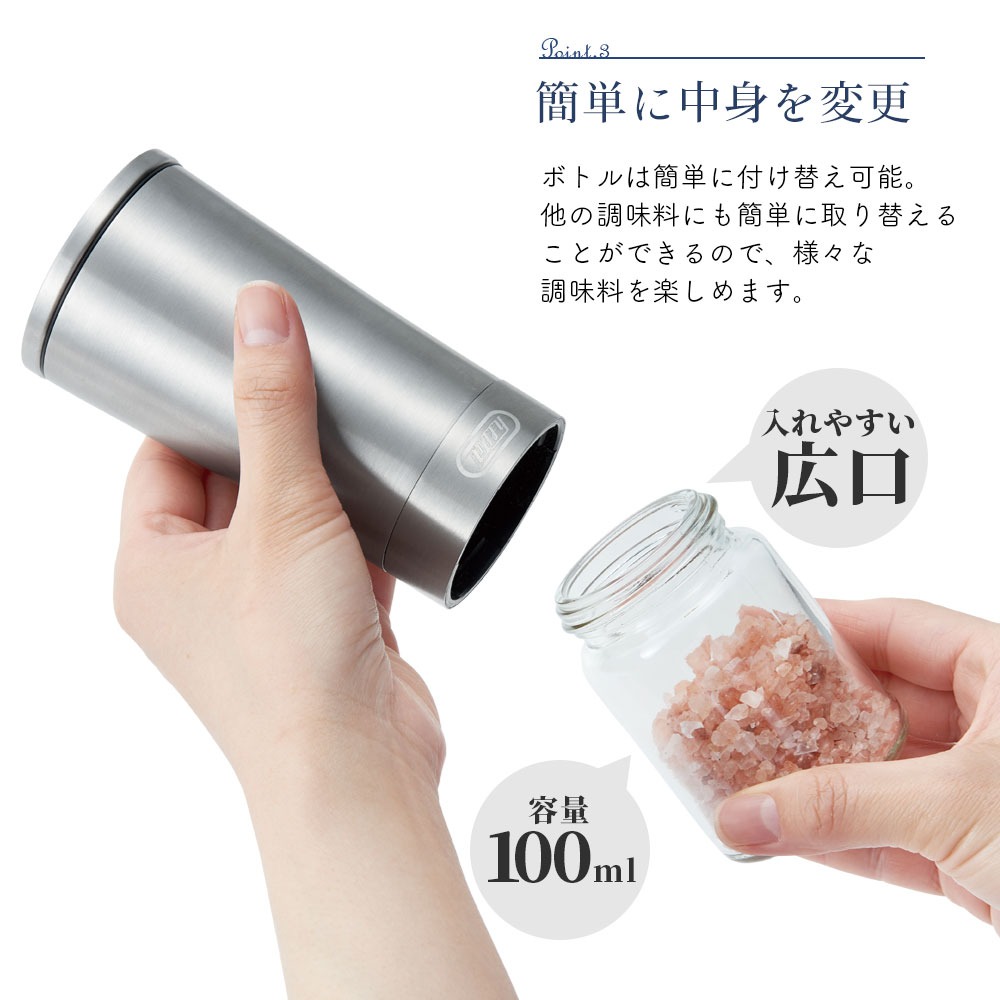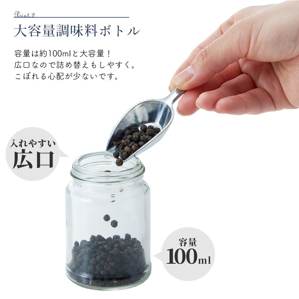 2個セット K-EM1 専用ボトル ペッパーミル用ボトル 電動ミル ふた付き ガラスボトル 予備 付け替え用 100ml 調味料入れ K-EM1-BOT2P 公式 ポイント消費