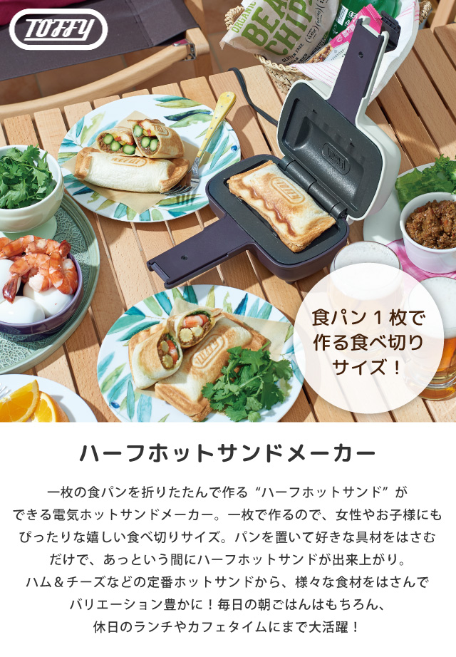 Toffy トフィー ハーフホットサンドメーカー 電気 食パン 1枚 トースト ランチ ブランチ K-HS3-SP K-HS3-PA K-HS3-A ラドンナ【63.4】