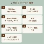 豆は挽き目調節ダイヤルで無段階の繊細なグラインドが可能で、粉からのドリップにも対応。抽出温度・味わいはそれぞれ3パターンから選択でき、お好みや気分に合わせてコーヒーが淹れられます。