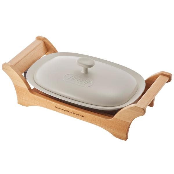 Color:グレージュ 【Toffy/トフィー】 オーバルグリルプレート K-GP1 ヒーター一体構造 セラミック ホットプレート 焼く 煮る 蒸す 炒める 230℃ リアルウッド 映える K-GP1-GE グレージュ