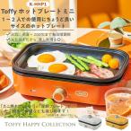 - 商品情報 商品の説明 主な仕様 【幅広い料理をお任せ!】火力は保温~200℃まで無段階で調節可能。ふたも付属しているため、焼くだけではなく蒸し料理など、さまざまなレシピでお使いいただけます。 【コンパクトなサイズ感】1~2人での使用にぴったりなサイズです。出したりしまったりが面倒にならず、気軽にホットプレート調理をお楽しみいただけます。 別売のたこ焼きプレートと深鍋プレートに交換すれば、レシピはもっと広がります! 普段使いからホームパーティーまで幅広いシーンで活躍! ◆Toffy Happy Collection◆ すっきり気分が晴れない日でも私たちの心を温かく照らし、 暮らしに明るさと楽しさをもたらす存在でありたい。そんな願いを込めたコレクションです。 お部屋や身の回りを心地よく活気づけ、日常に“Happy”と“Lucky”をお届けします。
