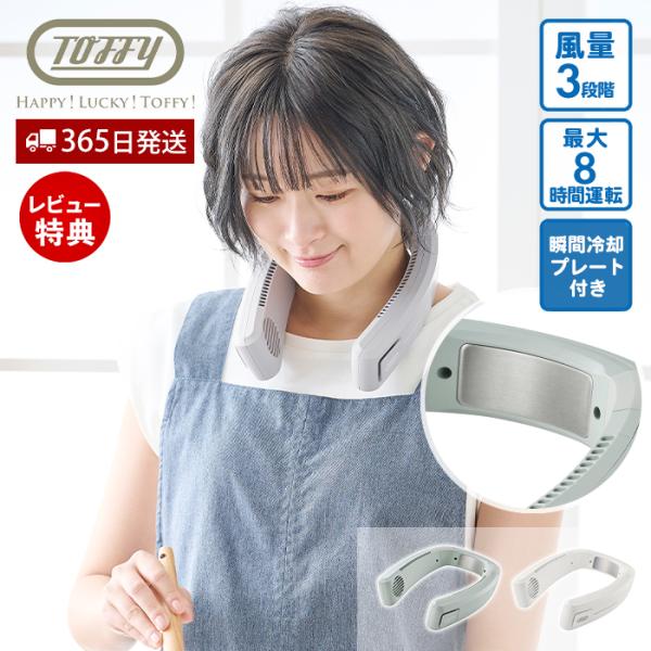 - ・ハンズフリーで最長約8時間使える・首元には冷たい冷却プレート付き・首にフィットしやすい形状※画像はイメージです送風&ひんやり冷却プレートのダブル効果首元に冷却プレートが付いたToffy ハッピーコレクションのネックファン。冷却プレートで首元を冷やしながら、上下送風で心地よい風を首全体に届けます。ハンズフリーで最長約8 時間使える仕様。通勤・通学・お家の中でと、シーンを選ばず使用できます。荷物が多くてもハンズフリーだから安心。冷房が届きにくいキッチンなどでのお料理中にも最適です。おうちでのリラックスタイムにもご使用いただけます。■開封後のご返品はお受けできません。対応機種をお確かめの上ご注文ください。●外形寸法:約175(W)×90(H)×210(D)mm●重量:約370g(付属品含まず)●充電電池:リチウムイオン蓄電池 3.7V 4,000mAh(保護回路付)●電源:5V 1.8A(USB充電式)●充電時間:約4時間●連続使用時間:送風:約2〜8時間、送風+冷却:約1時間〜2時間●運転モード:風量:3段階、冷却:ON/OFF●使用推奨温度:25℃〜40℃●USBケーブル長:約100cm●主な材質:ABS樹脂(本体)、シリコーンゴム(本体)、アルミニウム合金(冷却プレート)●付属品:専用USBケーブル、ユーザーズガイド(保証書含む)