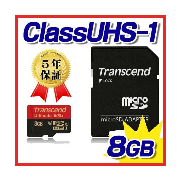 microSDHC 8GB Class10 UHS-1対応 信頼のトランセンド製 5年保証 ハイスピード Ultimate microSDHCカード。SDカード変換アダプタ付き。