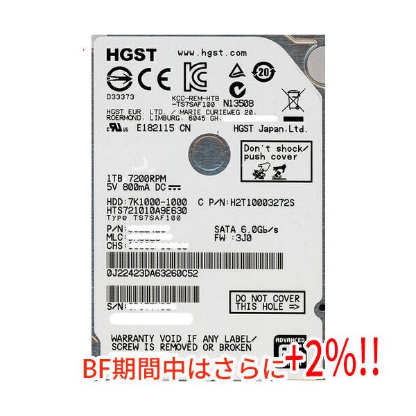 【ブラックフライデー!ポイント3倍!11/25-11/30!】HGST製HDD 2.5inch HTS721010A9E630 1TB 9.5mm [管理:2000001551]