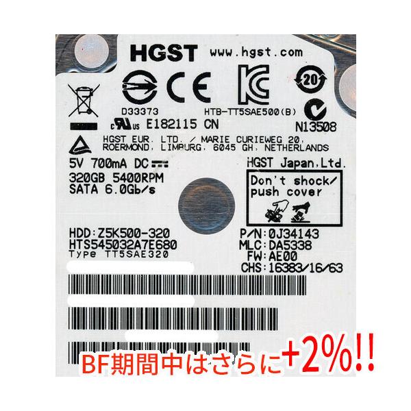 【ブラックフライデー!ポイント3倍!11/25-11/30!】HITACHI ノート用HDD 2.5inch HTS545032A7E680 320GB [管理:1000001956]