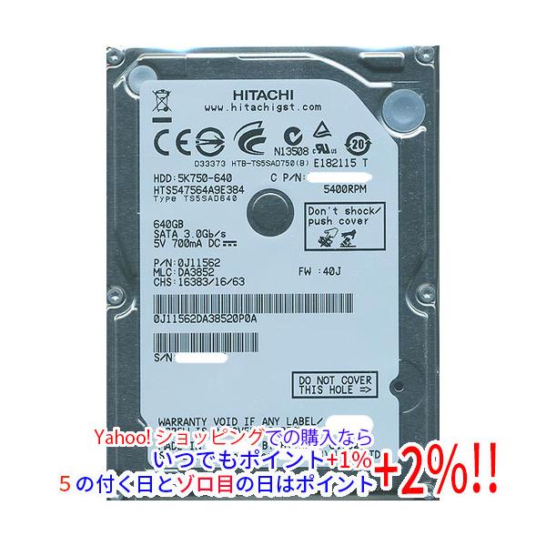 HITACHI ノート用HDD 2.5inch HTS547564A9E384 640GB