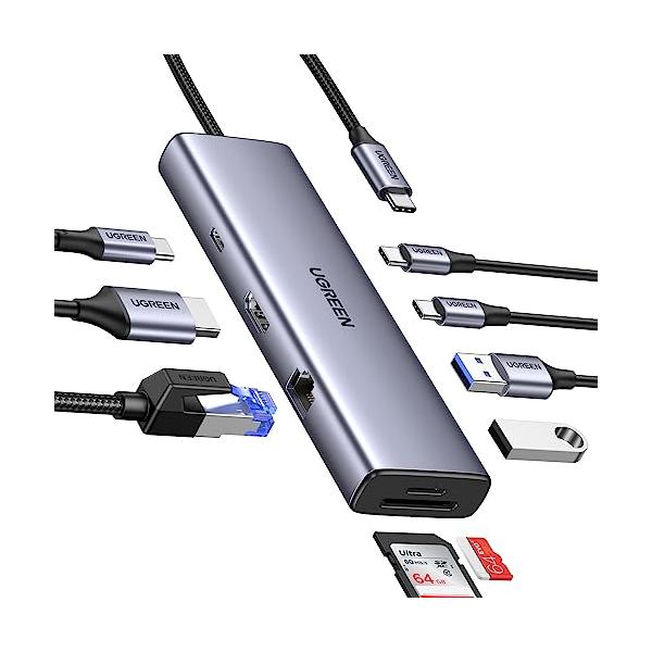 ・【9-in-1多機能なUSB Cハブ】USB Type-Cポート1をHDMI(4K@60Hz)×1、USB3.0×2、USBC3.0データ転送×2、USB PD対応充電ポート×1、SD&マイクロSDカードスロット×1、ギガビットイーサネット×1に増設できる、USB Type-Cハブです。 あらゆるポートは同時に使用できます。 UGREEN usb-c ハブはノートパソコンにUSB - 楽天での商品説明(UGREEN公式楽天市場店)