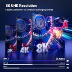 ・【双方向伝送 DisplayPort - DisplayPort ケーブル】8K@60Hz 最新DisplayPort 1.4規格のディスプレイポート ケーブルは最大8K(7680x4320@60Hz)の解像度に対応し、4K@240Hz高リフレッシュレートにも対応で、臨場感溢れる映像と音声を忠実に伝送可能なゲームファン向けにカスタマイズするモニターケーブルです。4K(3840*2160)@240Hz、2K(2560*1440)@240Hz、1080P Full HD(1920*1080)@240Hzの解像度と下位互換性があり。解像度などの相性の心配がなく、高解像度とリフレッシュレートのゲームモニターに最適で、大画面で精細な画像をお楽しめます。