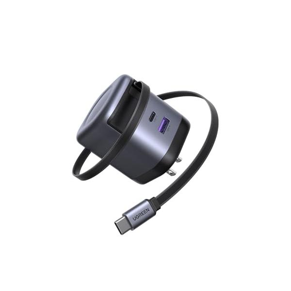 UGREEN 65W 充電器 巻き取り式【単ポート65W】69CM 8階段調整可能 伸縮式 Type-C ケーブル内蔵 USB-C/USB-A