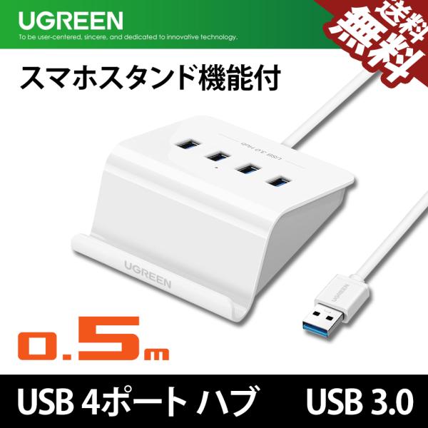 UGREEN USBハブ 4ポート USB3.0 バスパワー 高速 Windows Mac OS linux chromebook スマホスタンド付き ケーブル 0.5m 40439