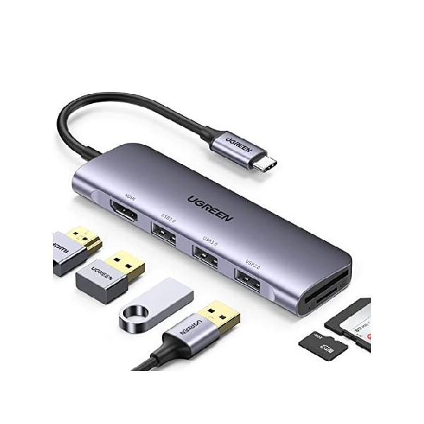 【並行輸入品】 UGREEN USB-C ハブ 6 in 1 USB C to HDMI 4K SD TFカードリーダー Type c マルチ変化だアダプター 3ポートUSB3.0 HUB MacBook Pro