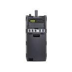 - 「特長」 ●ワイヤレスアンプでは初の防水性能IPX4を達成。屋外での使用も安心です。 ●定格40W、最大60 Wの大出力で音楽性能をアップ。様々なシーンでお使い頂けます。 ●CDプレーヤーを搭載。再生速度を調節できるスピードコントロール機能があり、SD/USBメモリーの再生にも対応しました。 ●コストパフォーマンスに優れた300MHz帯ワイヤレスマイクロホンが使用可能。 ●ワイヤレスチューナーSU-350が標準で1台組込まれており、追加で2台(別売)を組込むことで、最大3台のワイヤレスマイクロホンが使用できます。 ●マイク入力1、外部入力1、2.があり、外部入力1には入力感度切換スイッチがあります。 ●外部スピーカー端子はスイッチの切換により内蔵スピーカーのみ、あるいは内蔵スピーカー+外部スピーカーの選択ができ、外部スピーカーは内蔵スピーカーとは別に音量調節が可能です。 ●トーン切換はノーマル/スピーチ/ミュージック/ダンスの4種類をプリセットしていますので、シーンに合わせて最適な音質が得られます。 ●ワイヤレスマイクロホン2本を本体ケース蓋内に収納できるマイクホルダーがあり、使用時には本体上部に装着することができます。 ●エコー機能を搭載していますので、カラオケにもご利用頂けます。 ●水や埃から操作部、演奏装置を保護する脱着可能な保護カバーを標準装備。 ●新デジタルアンプの設計により、大出力と省電力を実現。 ●AC100V、乾電池(単2形アルカリ)×10およびニカド蓄電池、外部電源の4電源方式で動作することができます。専用ニカド蓄電池用充電回路も内蔵しています。 「仕様」 ・使用電源:AC100V 50/60Hz、単2形アルカリ乾電池×10、専用ニカド蓄電池WBT-2001 外部DC電源 DC10V〜16V(12Vバッテリー) ・消費電力:30W(電気用品安全法) ・定格出力:AC時40W×1/最大60W×1、DC時22W×1/最大30W(本体のみ) AC時25W×2/最大35W×2、DC時20W×2/最大25W(本体+外部スピーカー) ・周波数特性:50Hz〜15kHz(偏差-2dB±3dB) ・外部接続スピーカー:4〜16Ω 許容入力25W以上 ・外形寸法:幅238mm 高さ548mm 奥行365mm ・質量:約10.1kg※CDプレーヤー(SD/USB対応)付