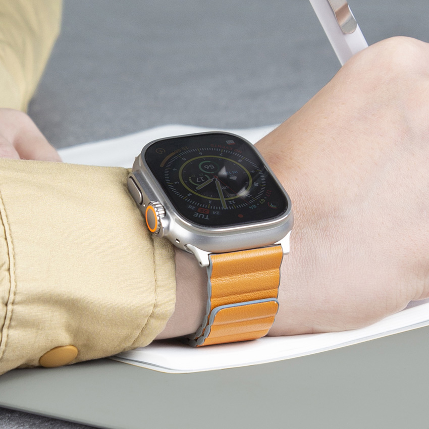 - ■製品特徴 片面に防水加工を施した美しい本革を採用し、上質感を演出。 レザーの色味にもこだわり、ファッションに馴染みやすい美しいカラーを実現しました。 もう片面には滑らかで上質なシリコンを採用し、シーンに合わせてリバーシブルで使用が可能。 耐久テストを繰り返したマグネットアタッチメントは、最大1.2kgで引っ張った場合にも外れません。 また、金属製の留め具がストラップを所定の位置に保ち、より快適なフィット感を実現します。 さらに、バンドの凹凸は蒸れを防止し、快適なつけ心地を維持します。 ■製品仕様/技術仕様 ・素材:本革、シリコン ・同梱物:商品本体