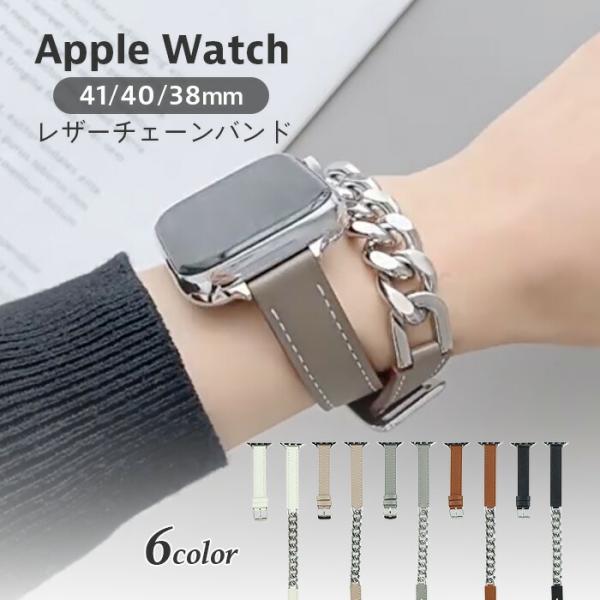 【メール便送料無料】アップルウォッチ Apple Watch バンド チェーン 韓国 レザー SNS映え 二重巻き メタル se 40mm 41mm 38mm シリーズ