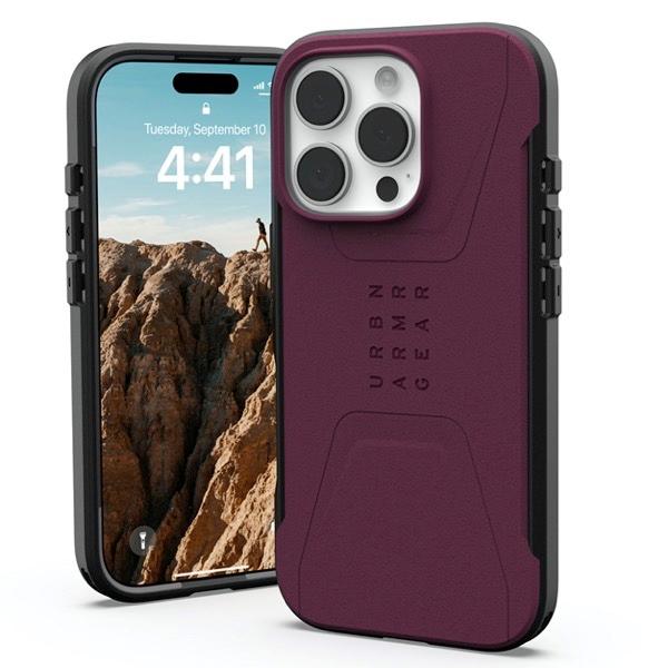 UAG ユーエージー iPhone 16 Pro CIVILIAN シビリアン 耐衝撃ケース MagSafe対応 Bordeaux UAG-IPH24MA-CMS-BD