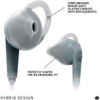 ハイブリッド人間工学デザイン:イヤーピースは、人間工学に基づいたフィット感を実現するためのシェーピングが施されています。