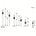 - ◆ハイパワー吸引モデル ◆リチウムイオン電池内蔵モデル ◆本体重量 0.85kg 超軽量モデル ◆4段階の長さ調節でより使いやすい ◆小回りの利くフロアヘッド 前後 約90°左右約60° ■ 仕 様 ■ 集塵方式:ダストカップ式(紙パックレス式) ノズルタイプ:フロアノズル 充電池:リチウムイオン充電池 2200mAh DC3.7V×3 運転時間(約):[ハイモード]15分 [通常モード]25分 充電時間(約):5時間 本体寸法(約): [本体のみ/ダストカップ装着時]幅92×奥行15×高さ40cm [スティック時/フロアノズル装着時]幅92×奥行15×高さ110cm [ハンディ時/フロアノズル装着時]幅92×奥行15×高さ50cm 本体質量(約): [本体のみ/ダストカップ装着時]0.85kg [スティック時/フロアノズル装着時]1.2kg [ハンディ時/フロアノズル装着時]1.1kg 運転音:-dB 集塵容積(約):-L 付属品: ダストカップ、フロアノズル、パイプ×2、すき間ノズル(ブラシ) ACアダプター、スティックホルダー、取扱説明書(保証書)