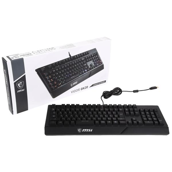 - MSI ゲーミング キーボード [ VIGOR GK20 JP ]※こちらは【取り寄せ商品】です。必ず商品名等に「取り寄せ商品」と表記の商品についてをご確認ください。人間工学に基づいた凹型のキーキャップを採用したデザインで、より快適なタイピングとゲーム体験が可能になります。 撥水性の高い構造とすることでGK20キーボードは耐久性を高め、簡単に掃除をすることができます。 GK20は、12キーのアンチゴーストキーを採用し、ストレスなくゲームを楽しむことができます。 このキーボードはLEDを搭載し、発光の調整や制御することによりゲーミング体験をより高めることが出来ます。