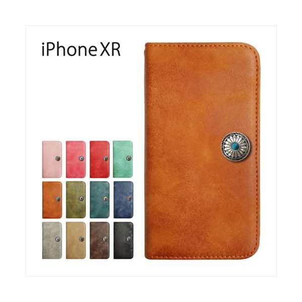 iPhone XR Apple アイフォン iPhoneXR スマホケース 手帳型 ベルトなし ネイティブ コンチョ ビンテージ ヴィンテージ PUレザー 合皮 カバー