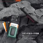 【スタンド&カード収納】… 背面にスライド式カードホルダーとスタンドを搭載しています。カードは3枚まで収納可能です。